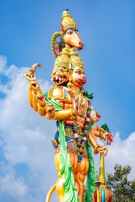 Lord Hanuman occupies a unique and exalted position within the Hindu pantheon. Revered as the ultimate devotee of Rama‚ he embodies selfless service‚ unwavering loyalty‚ and unparalleled strength – both physical and spiritual. He is considered the eleventh Rudra‚ an incarnation of Shiva‚ and a Chiranjeevi‚ blessed with immortality. His significance extends beyond the Ramayana narrative‚ influencing various aspects of Hindu philosophy and practice.